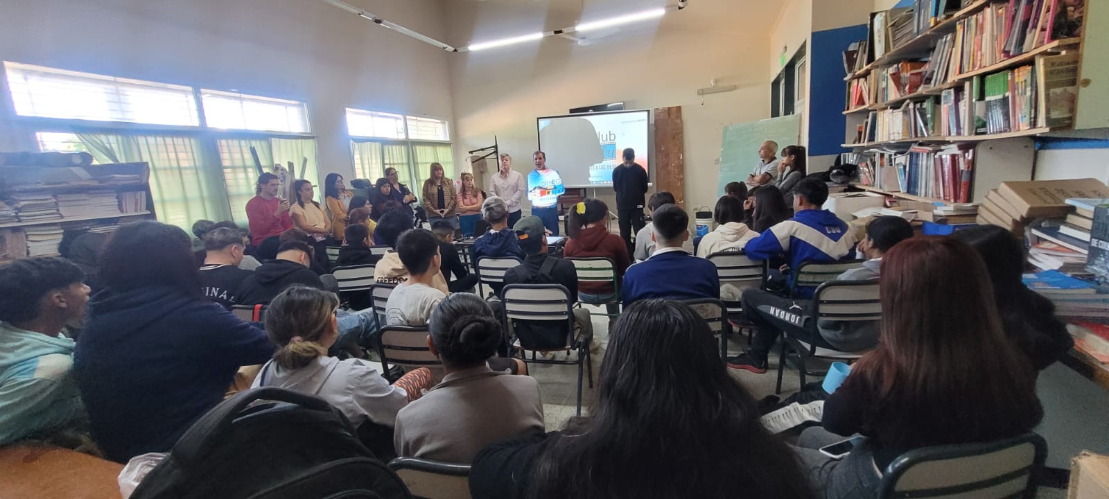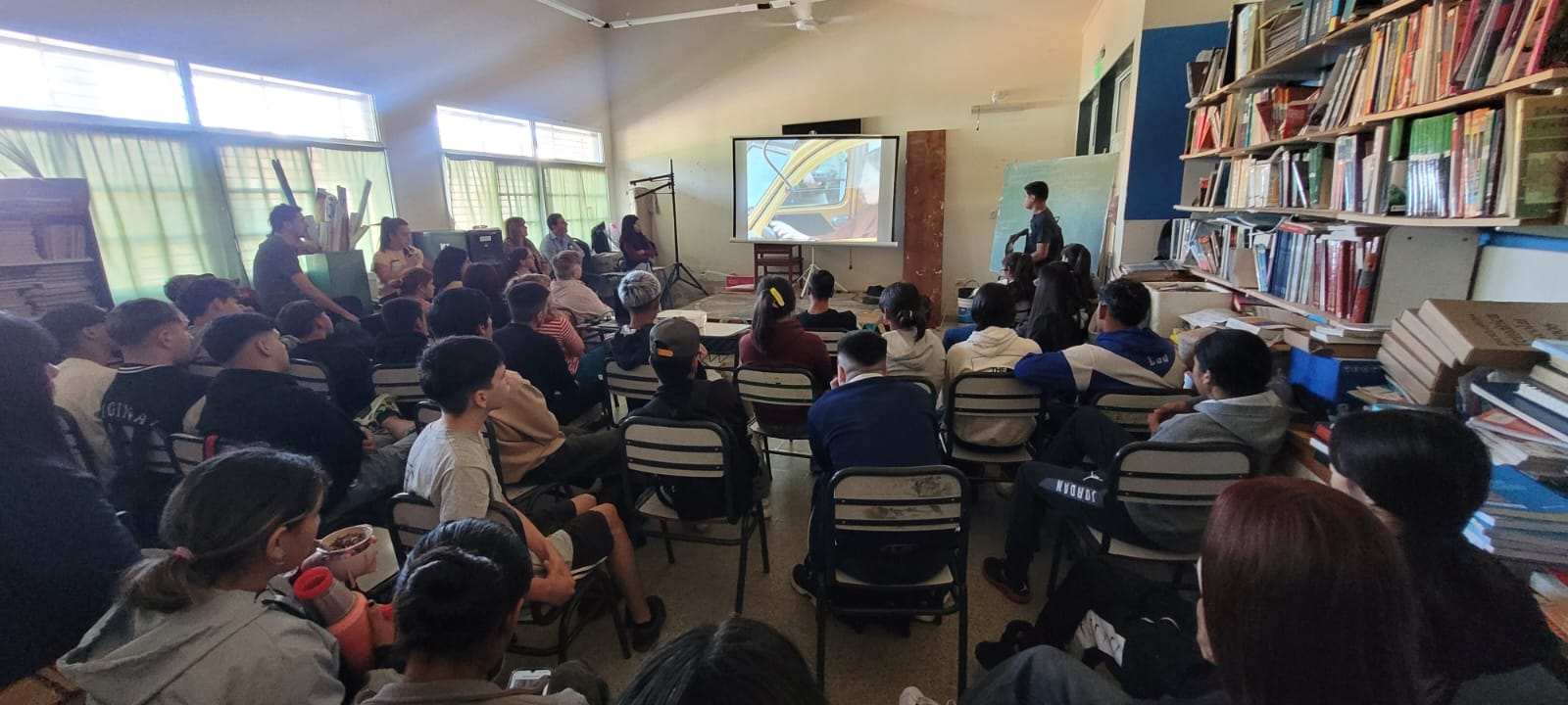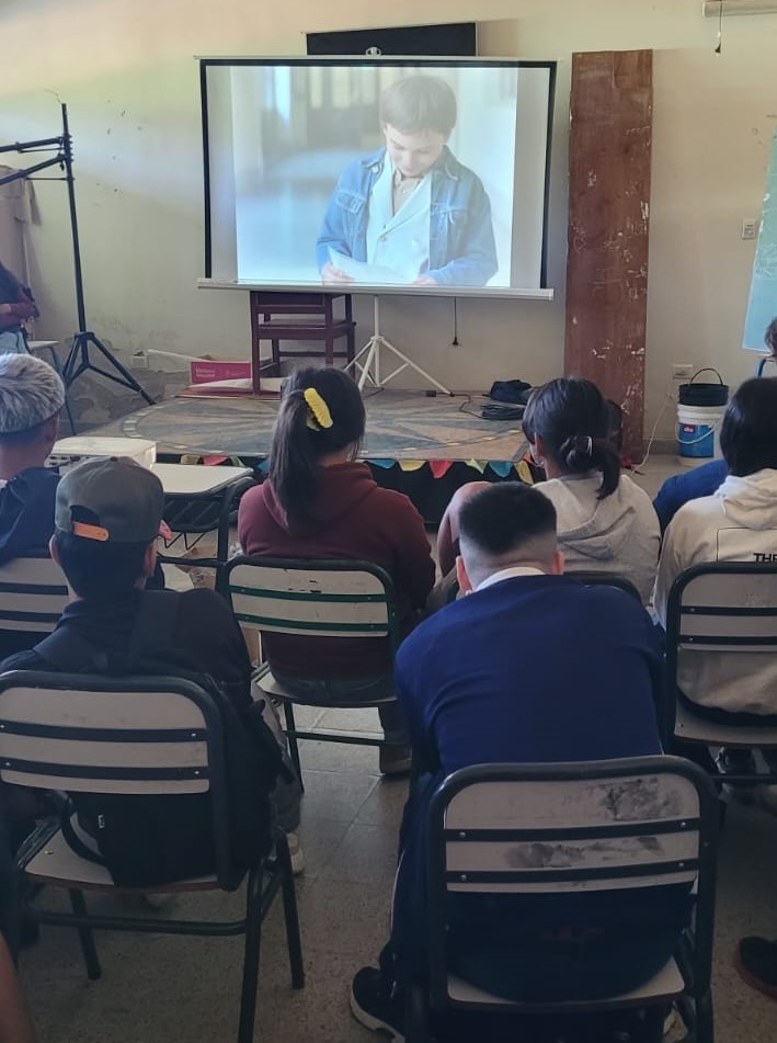 La Defensoría del Pueblo impulsó esta actividad, destinada a estudiantes del nivel medio, en conjunto con la escuela y el Cineclub de la Facultad de Ciencias de la Educación (UNER), con motivo del Día Nacional de la Memoria por la Verdad y la Justicia y los 50 años del golpe de Estado cívico-militar.