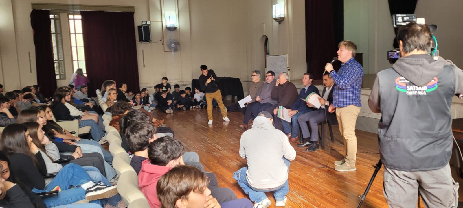 Estudiantes de distintas edades, de 1ero. a 6to. año participaron del encuentro en el que los Defensores del Pueblo, Lisandro Amavet y Fernando Veiga (Adjunto), junto a integrantes de la Mesa Diálogo Interreligioso de Paraná, contaron de qué se trata esta herramienta que busca erradicar este tipo de agresiones, principalmente, en los ámbitos educativo y deportivo.