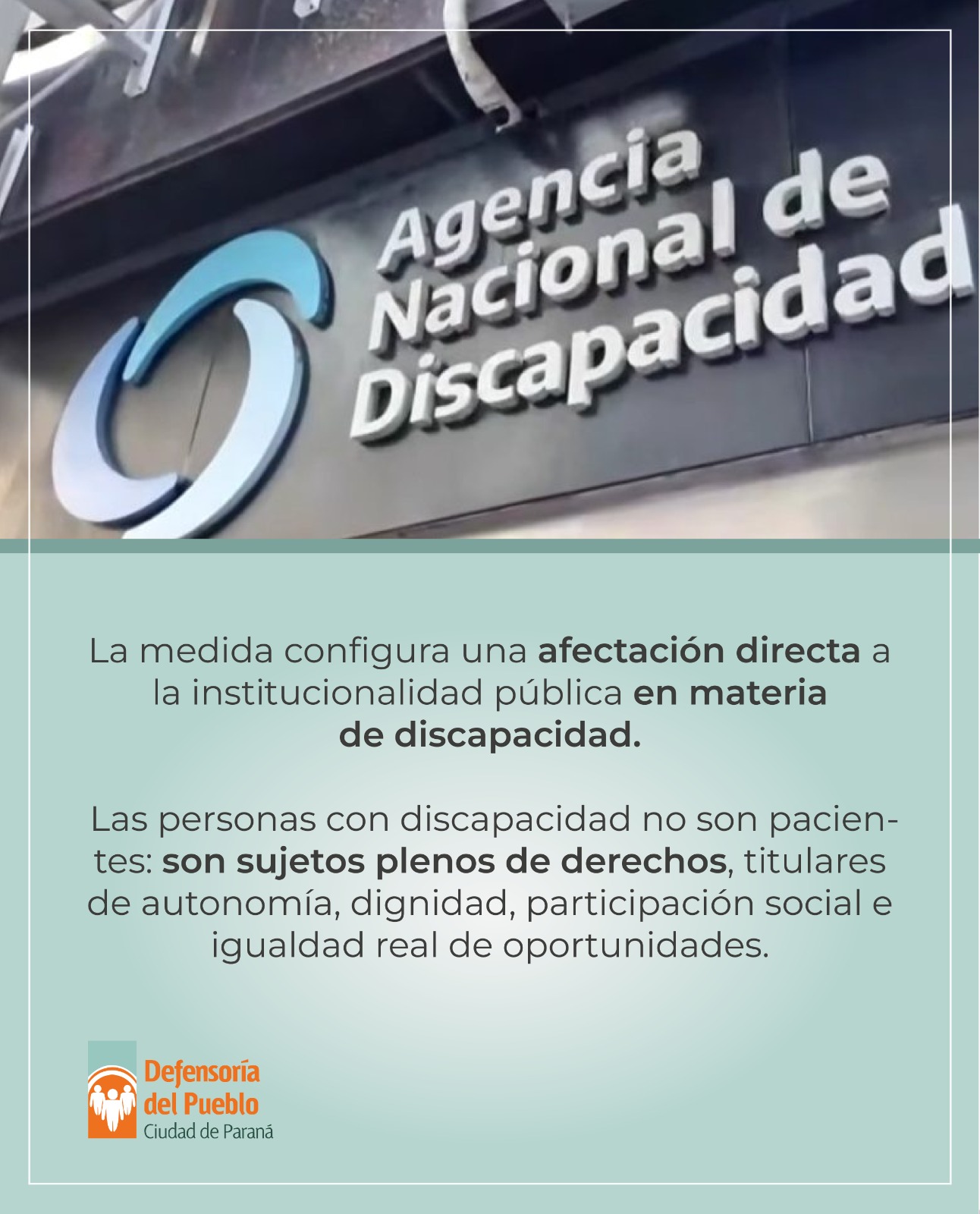 La Defensoría del Pueblo de Paraná adhiere al pronunciamiento contra la decisión de disolver la Andis